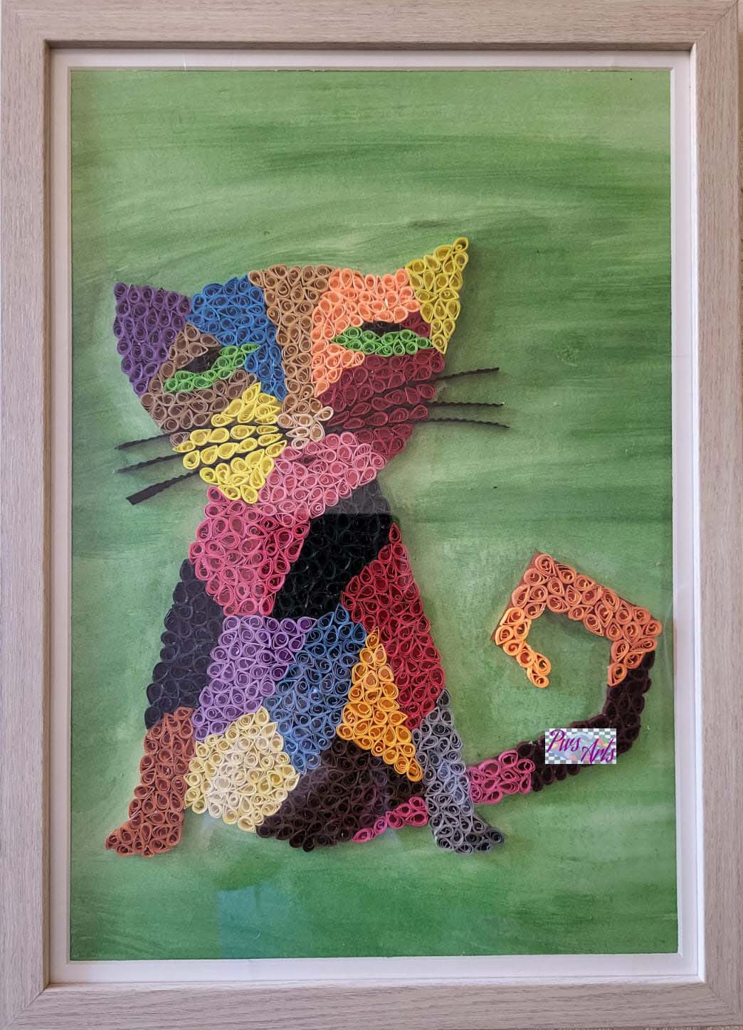 I began quilling (an art form that involves the use of strips of paper that are rolled, shaped, and glued together to create decorative designs) in April 2023, after attending an online workshop to raise funds for my favourite charity, the Cats Protection League. I find quilling extremely relaxing and whilst time-consuming, I particularly enjoy putting the pieces together to create a picture. I am still learning about the many quilling techniques available and hope to create more intricate pieces in the future.