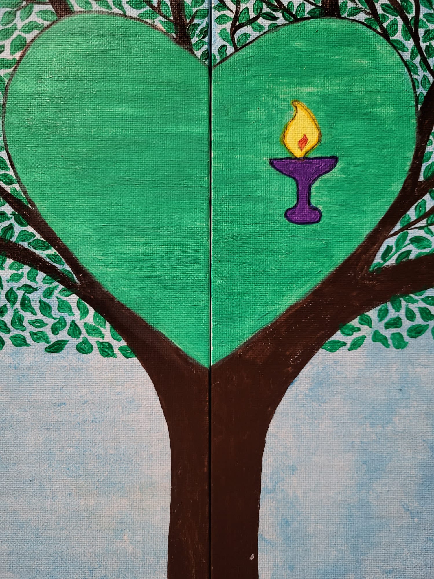 Centre heart painted and Unitarian chalice added